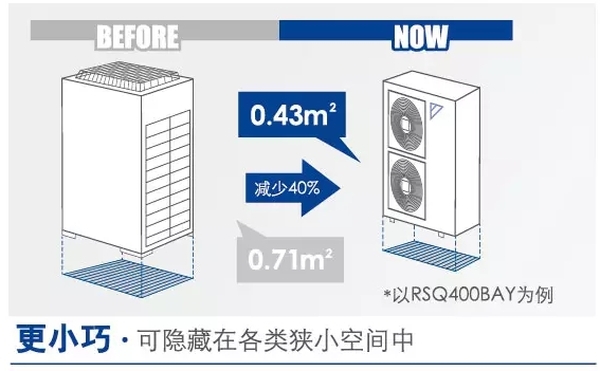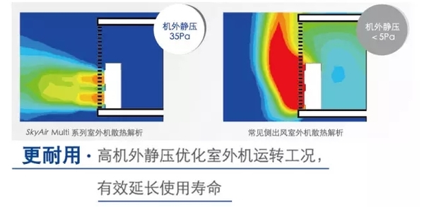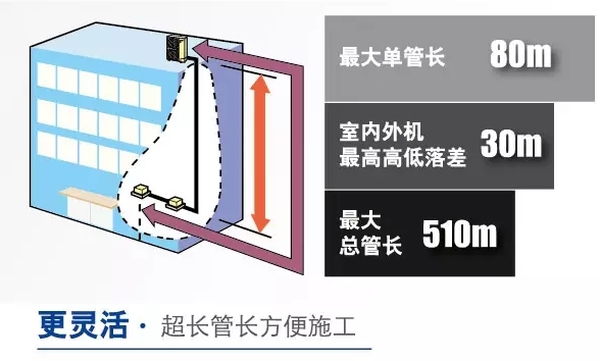 SkyAirMulti系列不僅機身小巧,可以根據業主需要隱藏在店鋪招牌后方、屋頂或建筑周邊綠化中,同時還輔以了長配管設計和高機外靜壓,相較普通分體式一拖一空調,連接長配管時空調能力更足,散熱能力更佳,具有更好的空調使用效果。