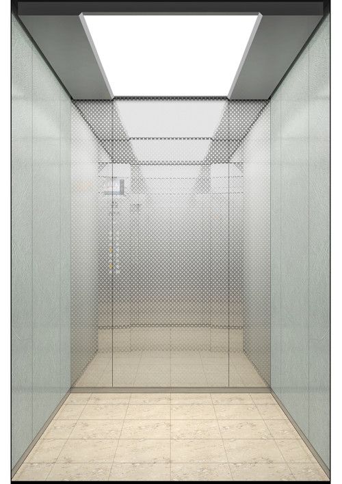 轎廂款型:YG-1641  天井:鏡面不銹鋼  兩側、后側板:兩側銀絲綢彩紋鋼板(GC26)+鏡面不銹鋼,后側超白烤漆玻璃+鏡面不銹鋼  前側板、門楣:鏡面不銹鋼  轎門:鏡面不銹鋼  地板:FL-PH09(拼花PVC)  操作盤(一體式):顯示屏:云端傳媒/其它:同BC-P5DT2