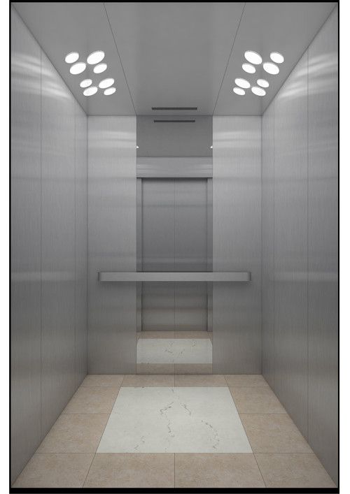 天井:ECO-XY,鏡面不銹鋼  前側板:彩紋鋼板(YP08)  門楣:彩紋鋼板(YP08)  兩側:彩紋鋼板(YP08)+鏡面不銹鋼飾條  后側板:彩紋鋼板(YP08)+鏡面不銹鋼  轎門:彩紋鋼板(YP08)  操作盤:BM-D2F9(鏡面不銹鋼)  扶手:WIN-002(發紋不銹鋼)  地板:PVC(FL-P14)