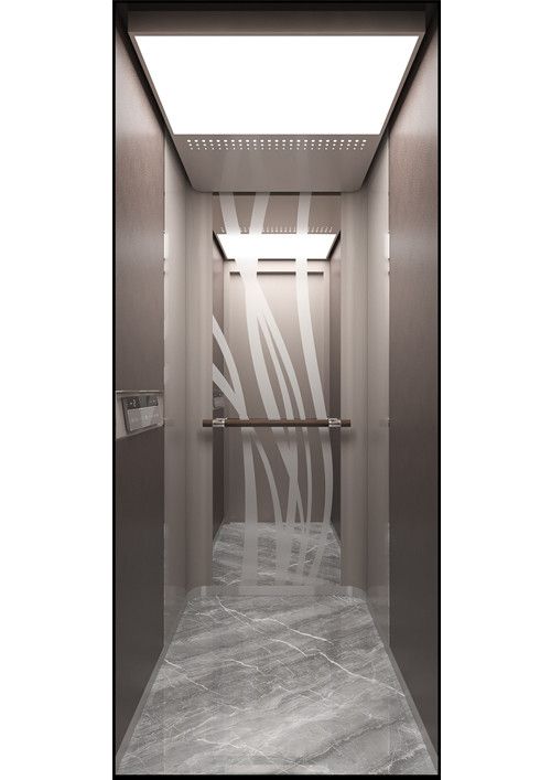 轎廂型號:YT-4649  天井:SKY-WD,金屬烤漆(YM-14)  兩側、后側板:兩側鏡面蝕刻(HM-0142)鍍古銅色,后側鏡面鍍古銅色  前側板、門楣:發紋鍍古銅色  轎門:發紋鍍古銅色  地板:PVC(FL-P29)  操作盤(一體式):顯示屏:7寸彩屏/其它:同BC-P2BT3